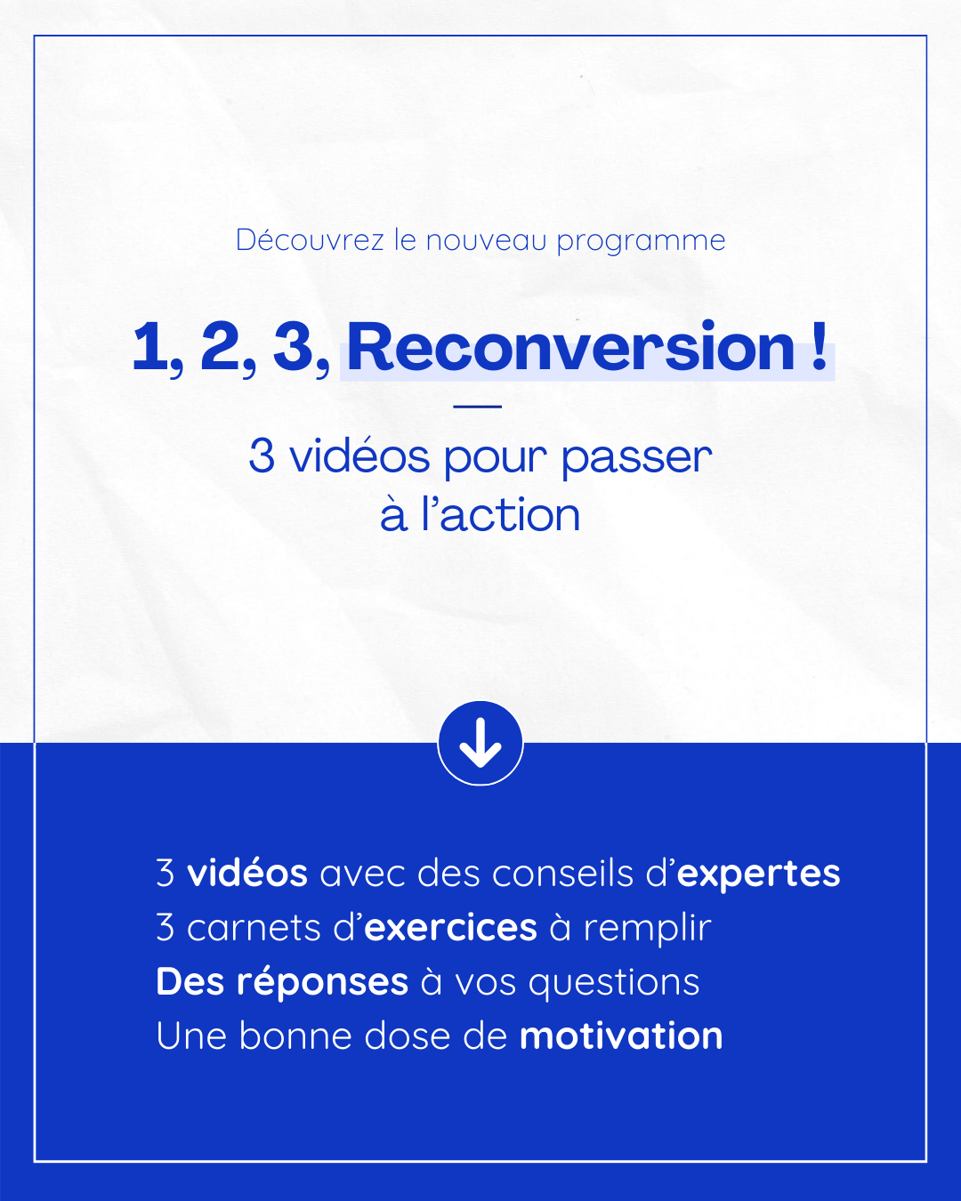 Trois vidéos, trois expertes, pour vous aider à franchir chaque étape de votre reconversion professionnelle en toute sérénité. Clarifier votre projet, renforcer votre confiance et sécuriser votre transition financière : ce programme vous donne des clés concrètes pour avancer à votre rythme vers un métier qui vous épanouit vraiment.